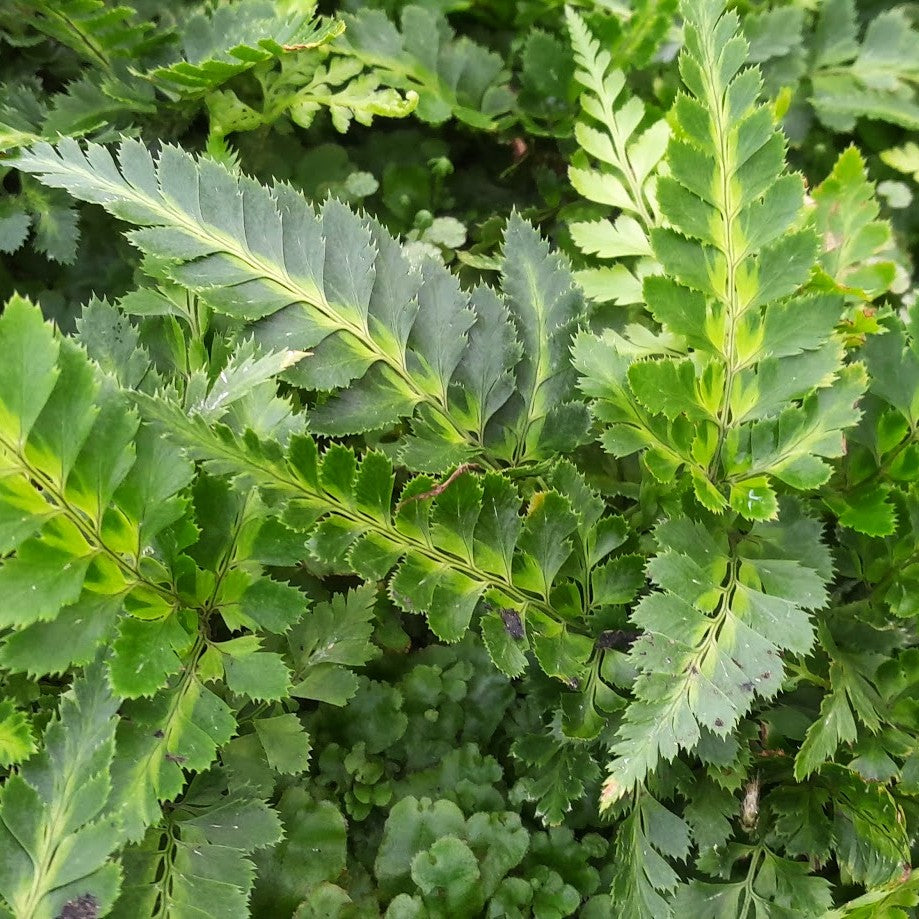 Felce perenne e sempreverde,di medie dimensioni caratterizzata da lunghe fronde di un bel verde smeraldo, il suo tratto distintivo è la variegatura centrale di colore giallo verde.